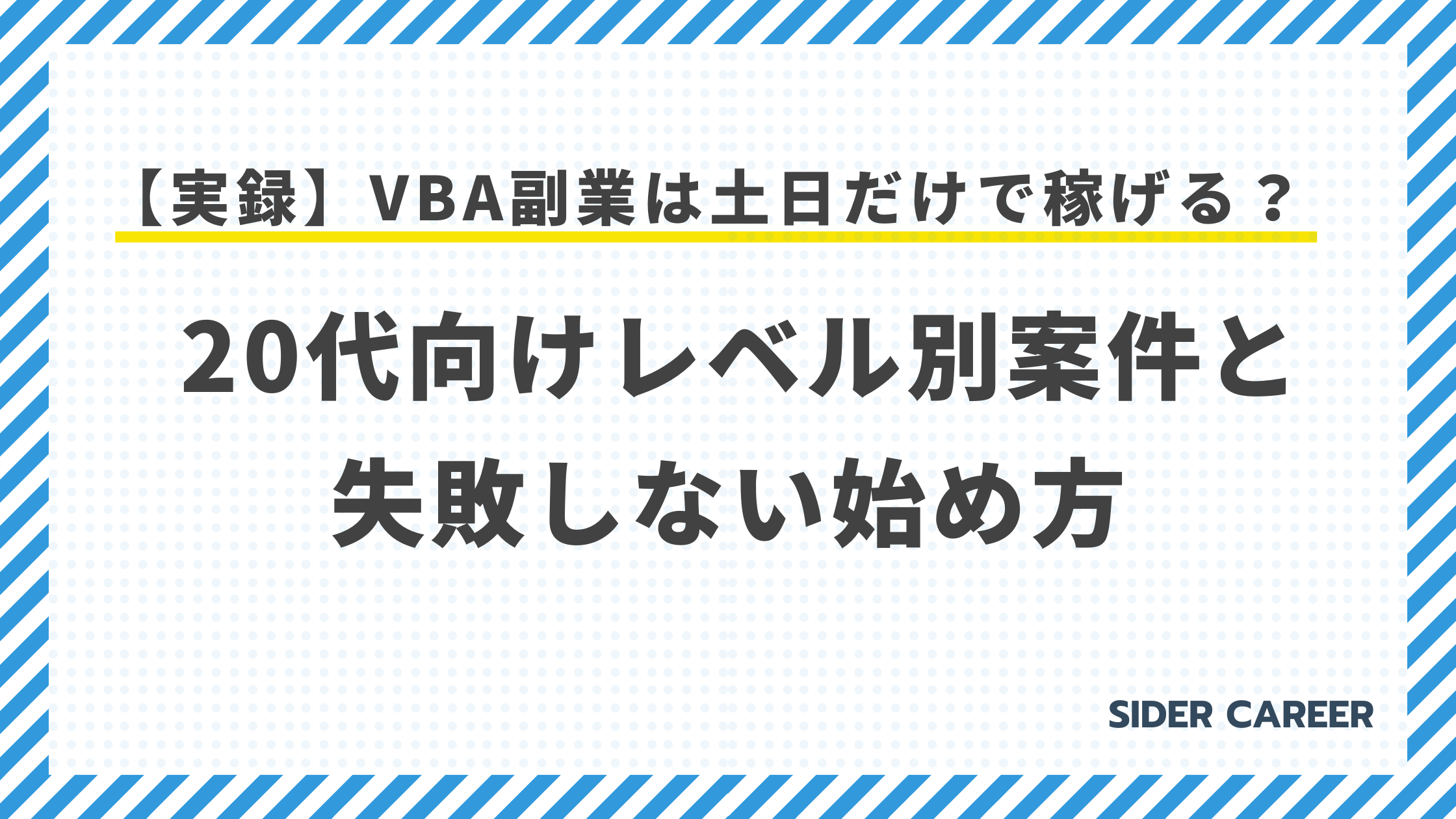 - 対象: 土日を使ってVBA副業を始めたいが、自分のスキルで通用するか不安な20代の方